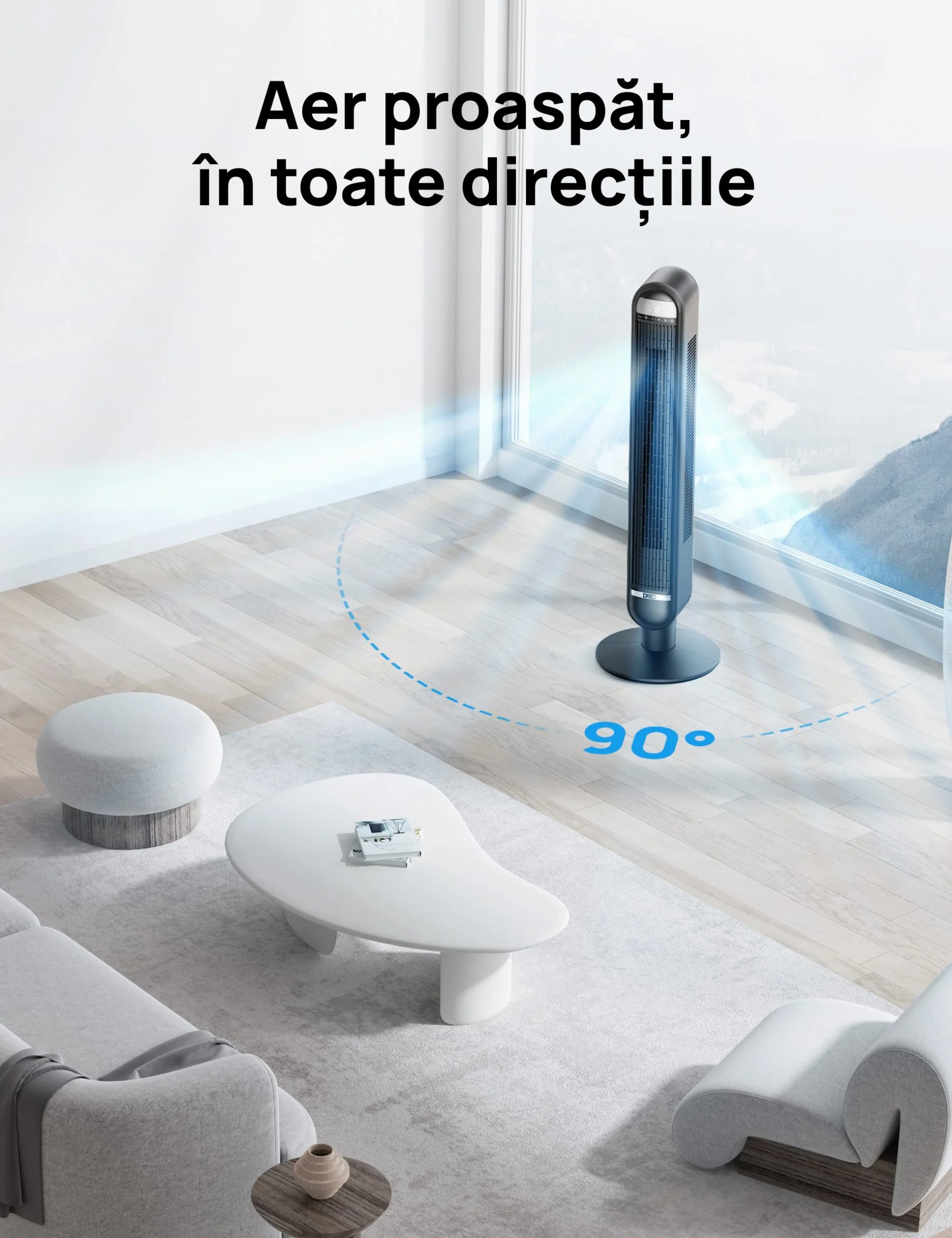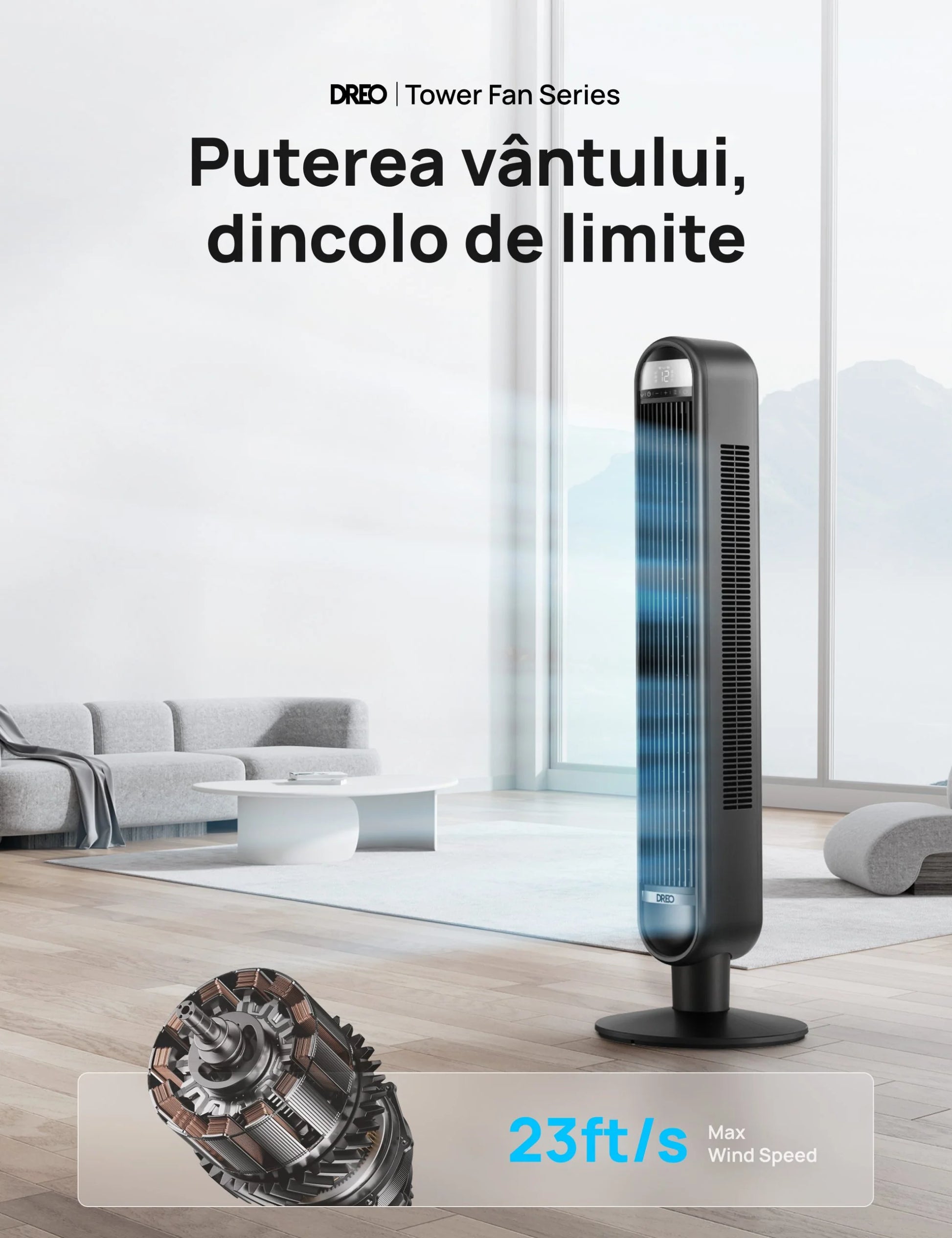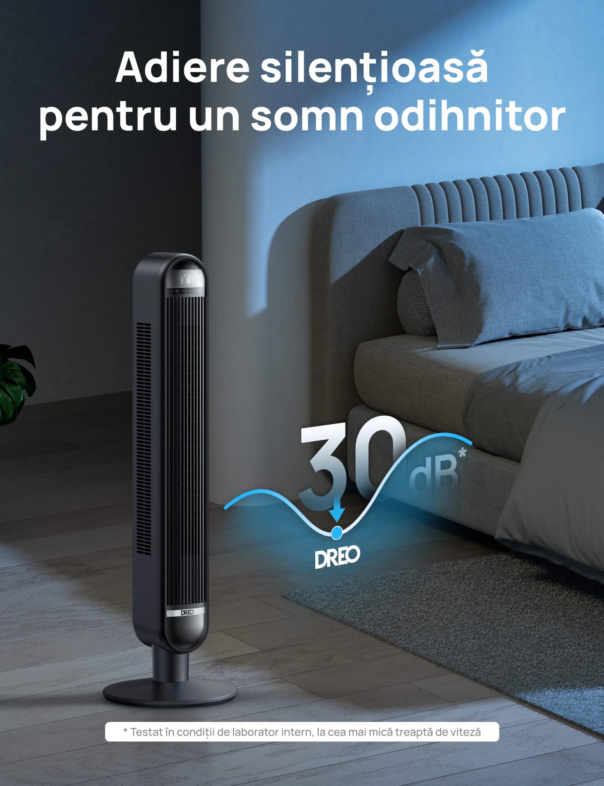 Ventilator Turn DREO Cruiser DR-HTF019, 6 Viteze, 4 Moduri Funcționare, 106 cm, HyperSilent 30dB, Oscilație 90°, Telecomandă, Negru