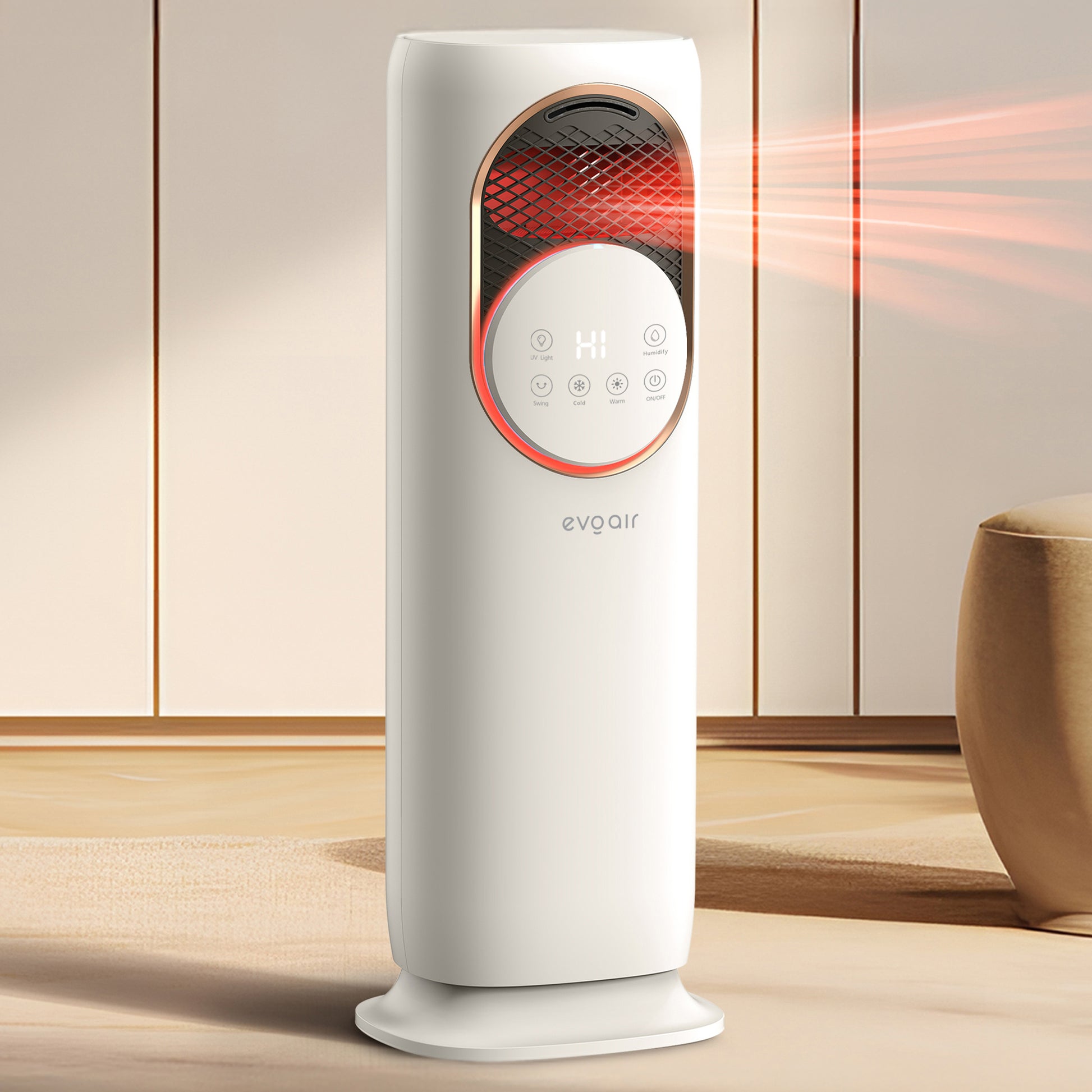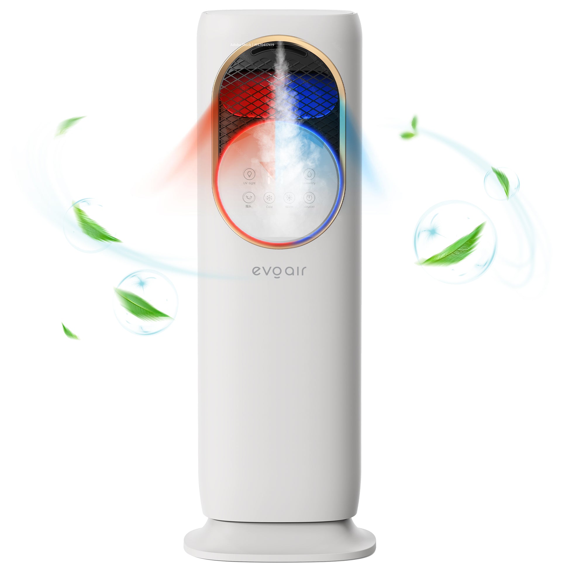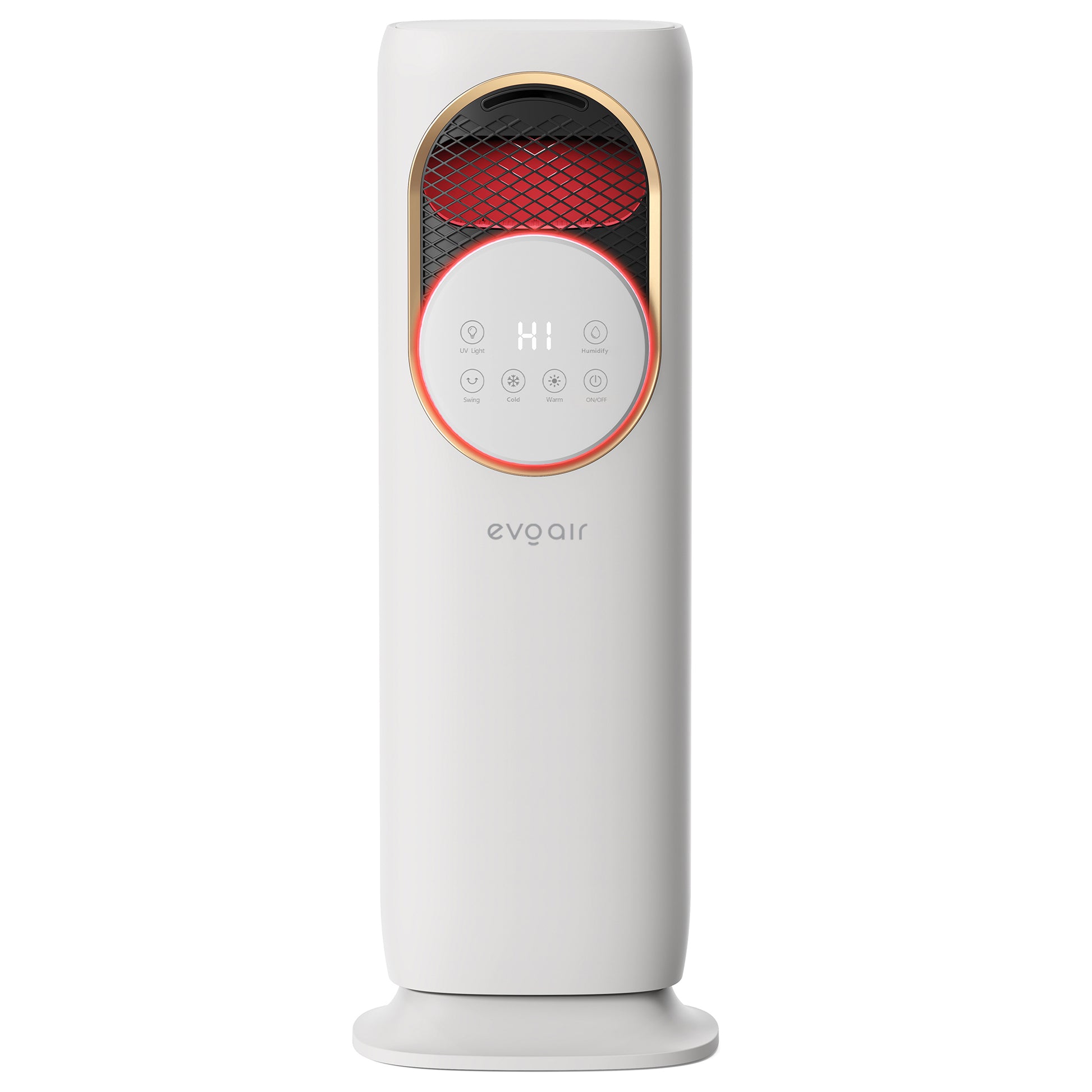 Ventilator Turn EVOAIR BRIIS GOLD, 4 în 1, Aerotermă, Funcție Încălzire/Răcire/Umidificare/Sterilizare UV, Telecomandă, 5 viteze, Pastile Răcire 2 + 2 Cadou, Rezervor 3.15L, Alb/Auriu